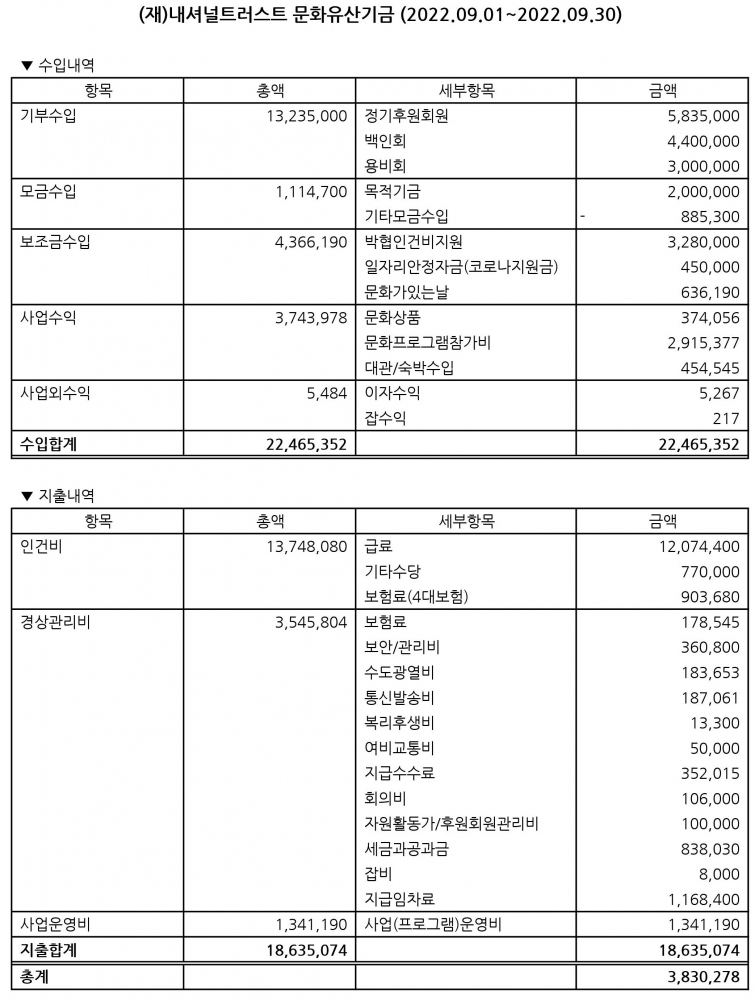 2022년 9월 수입지출명세서