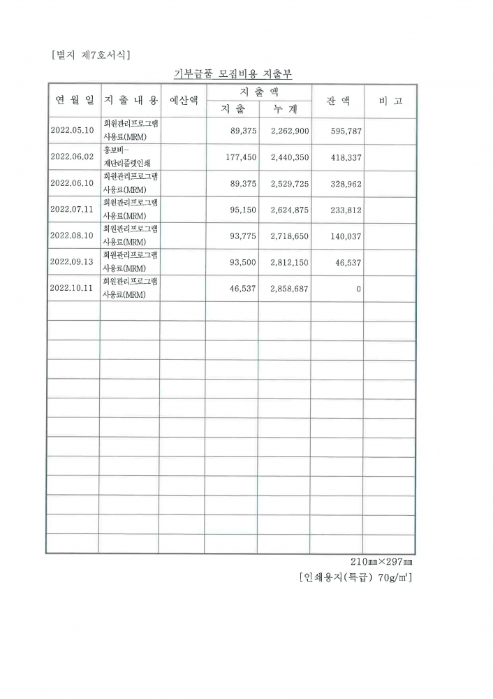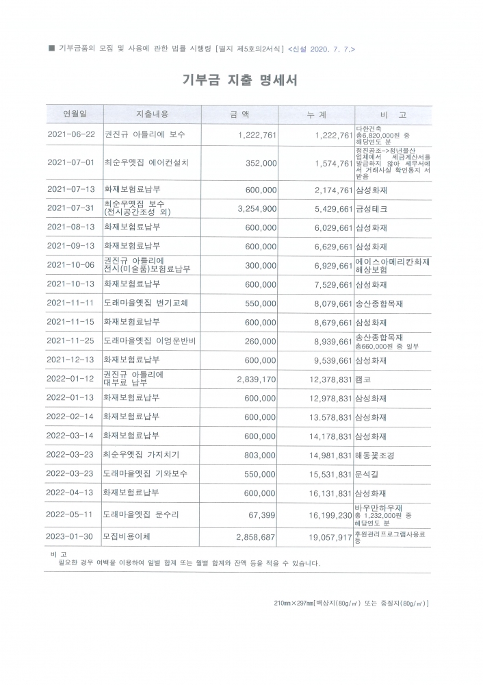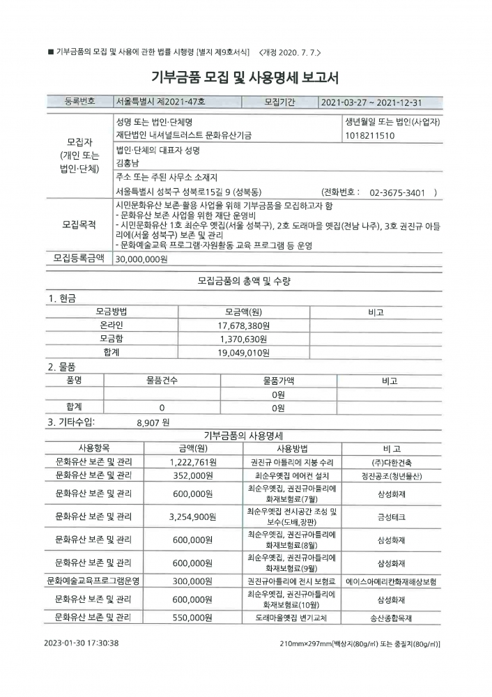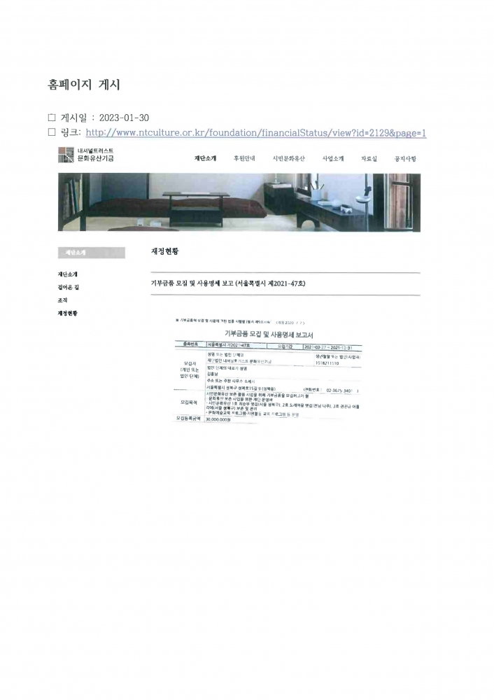 기부금품 모집 및 사용명세 보고 (서울특별시 제2021-47호)