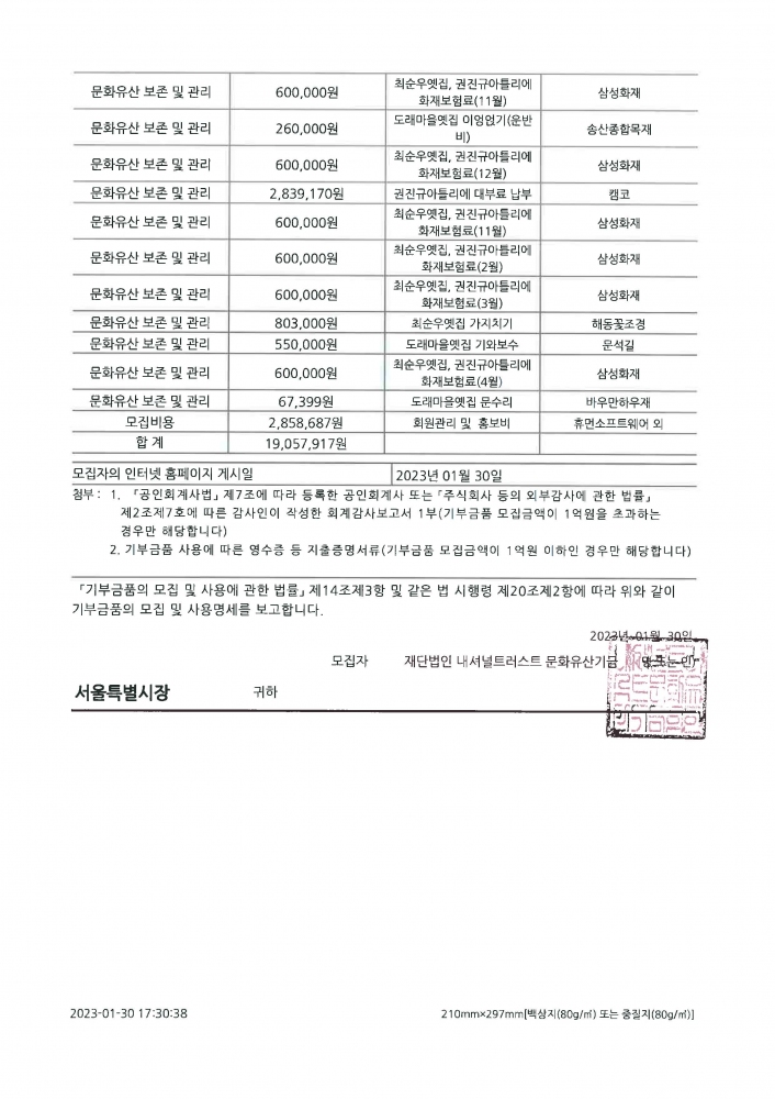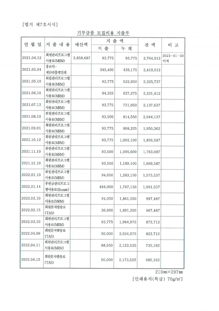 기부금품 모집 완료 보고서(2022-01-23~2023-01-20)