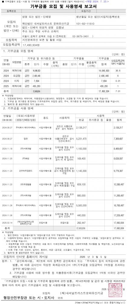 기부금품 모집 및 사용명세 보고 (서울특별시 제2024-52호)