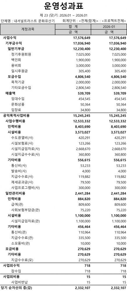 2026년 1월 운영성과표 (2026.01.01.~1.31)