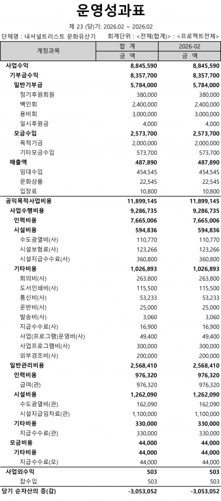 2026년 2월 운영성과표 (2026.02.01.~2.28)