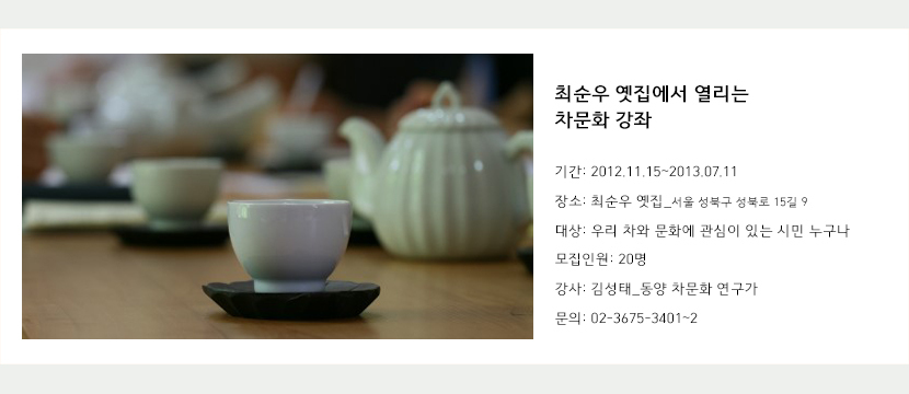 시민문화유산 최순우 옛집에서 진행되는 특별한 차문화 강좌에 많은 신청 바랍니다.