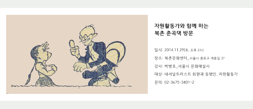 ·일정: 북촌문화센터(모이는 곳)→ 유심사터→ 석정보름우물터→ 중앙고등학교→ 고희동가옥