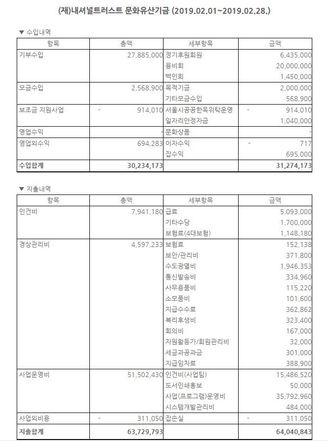 2019년 2월 수입지출명세서