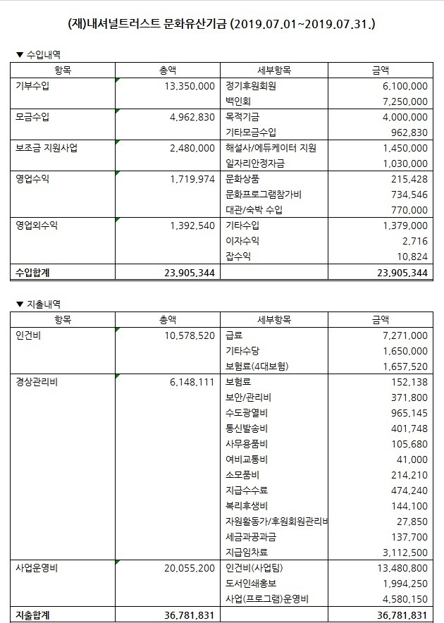 2019년 7월 수입지출명세서