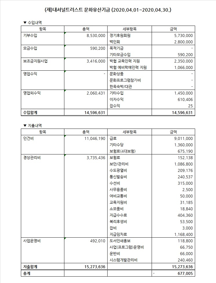 2020년 4월 수입지출명세서