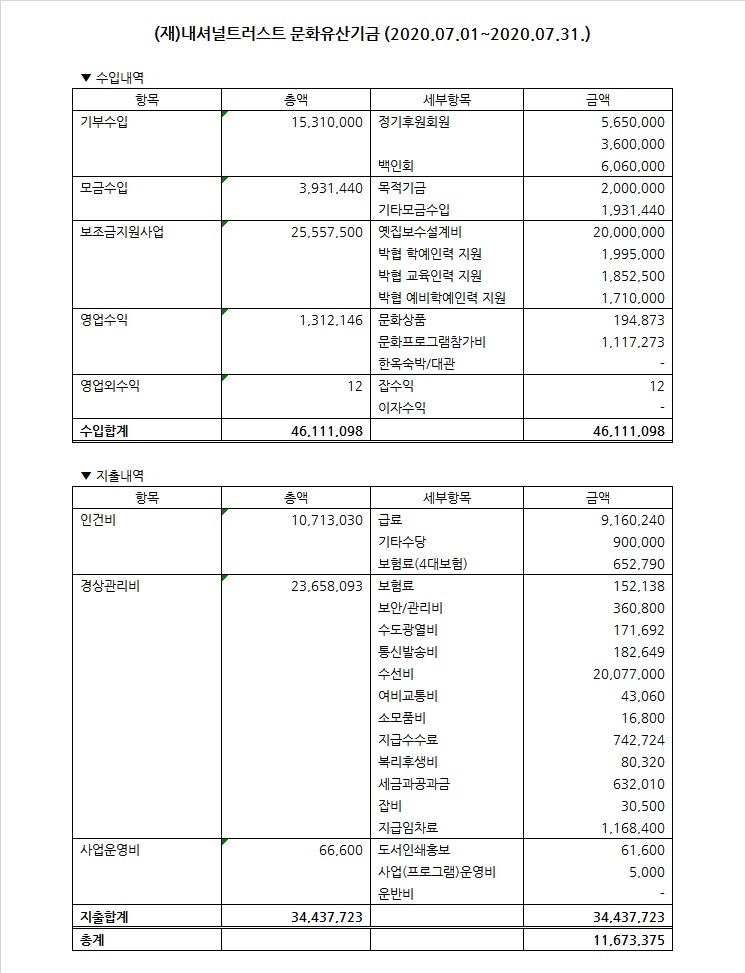 2020년 7월 수입지출명세서