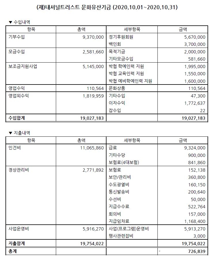 2020년 10월 수입지출명세서