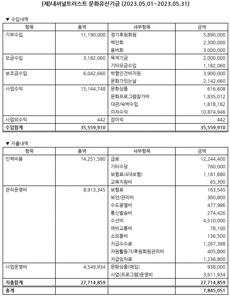 2023년 5월 수입지출명세서