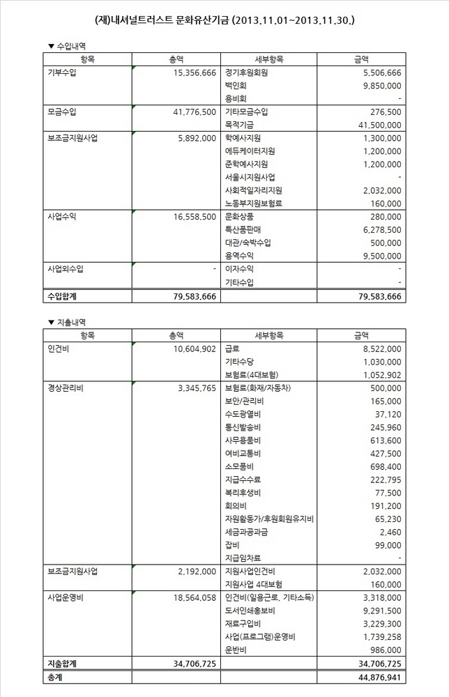 2013년 11월 수입지출명세서