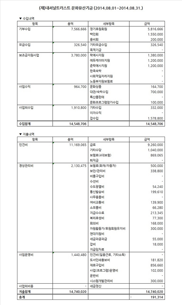 2014년 8월 수입지출명세서