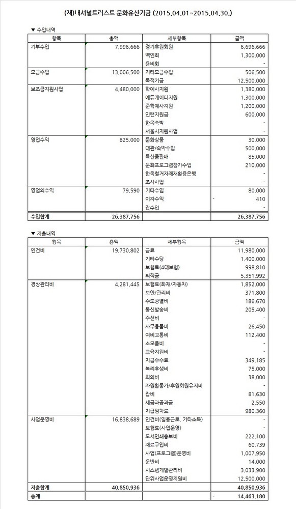 2015년 4월 수입지출명세서
