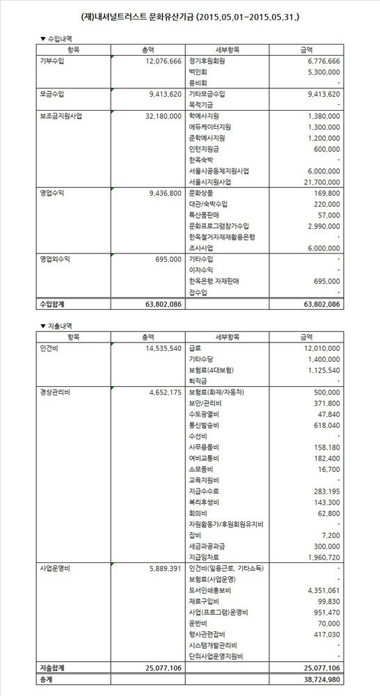 2015년 5월 수입지출명세서