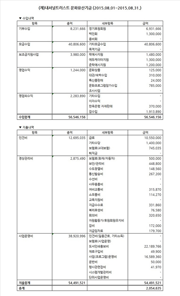 2015년 8월 수입지출명세서