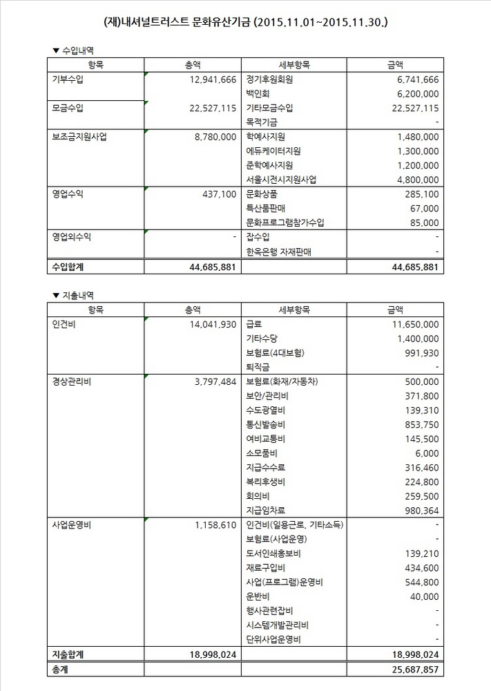 2015년 11월 수입지출명세서