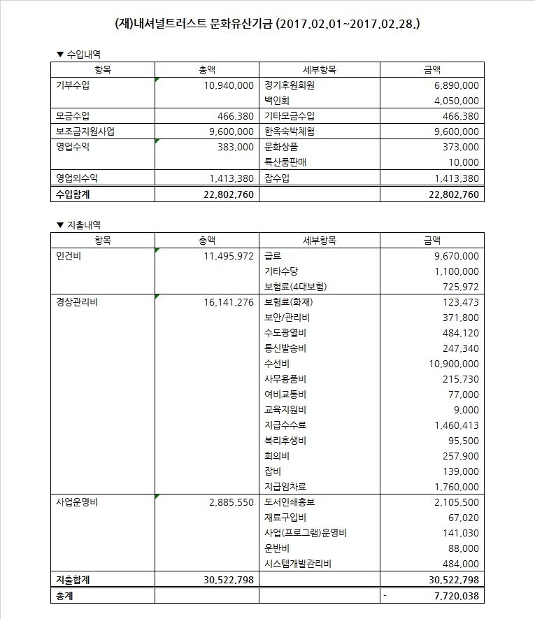 2017년 2월 수입지출명세서