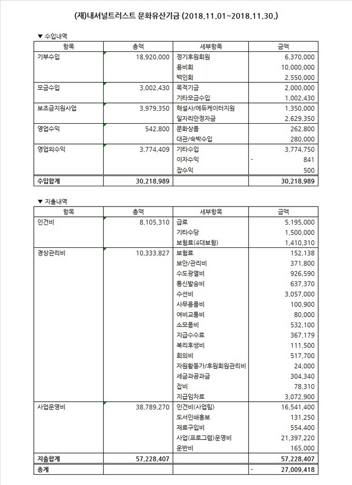 2018년 11월 수입지출명세서