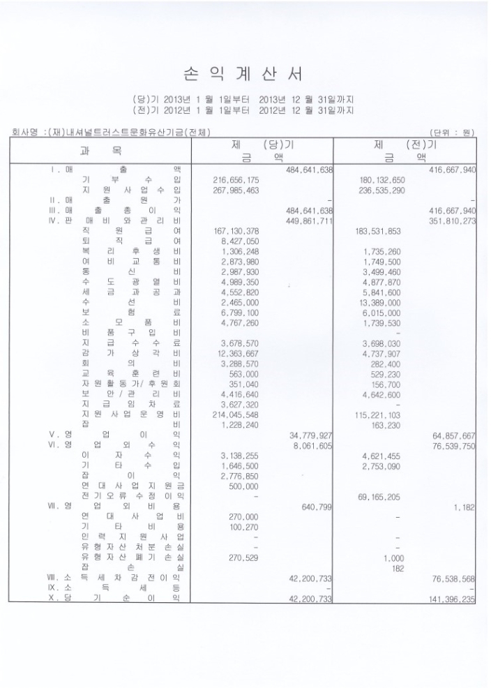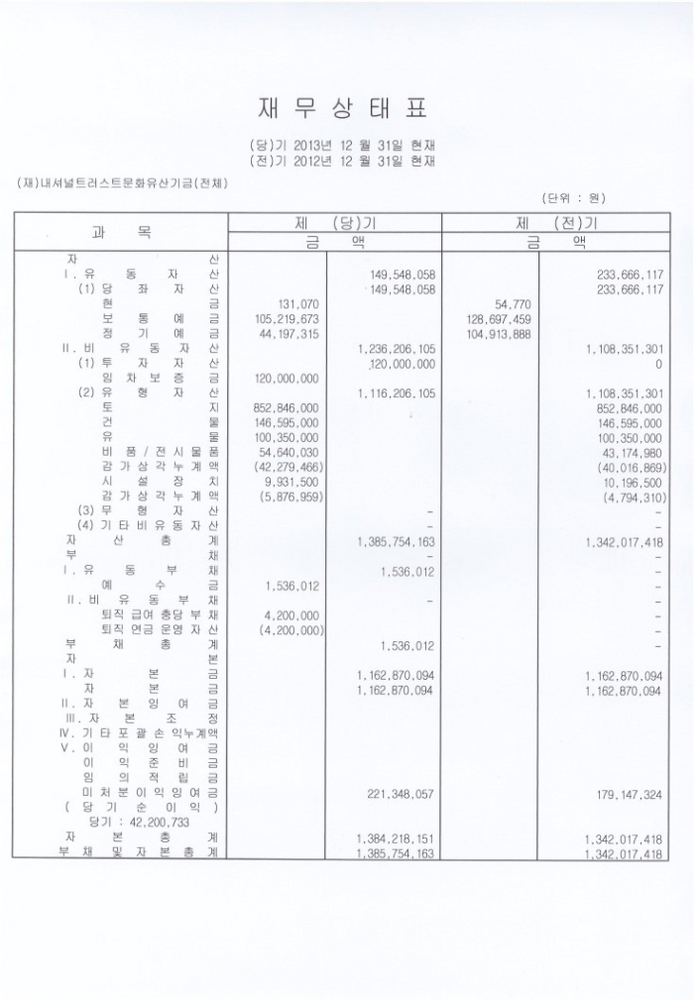 2013년 결산재무제표