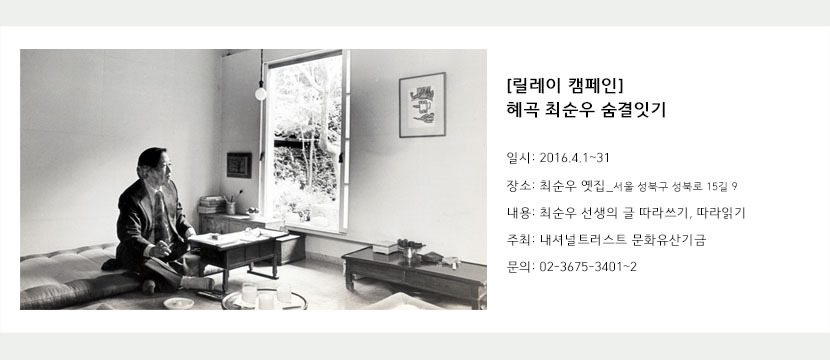 -우편: 서울 성북구 성북로 15길 9 최순우 옛집