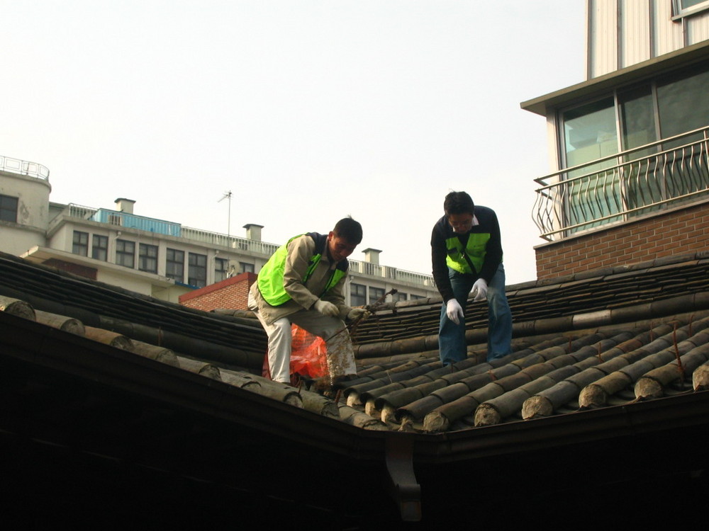 ▲최순우옛집 봄맞이 대청소-지붕 바위솔 제거