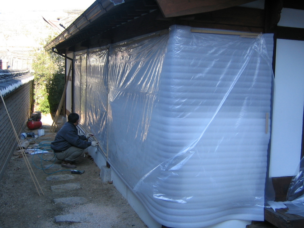 다른 해보다 유난히 춥게만 느껴지는 올 겨울을 무사히 나기 위해 12월 15일 최순우 옛집은 방풍작업으로 분주했습니다. 옛집의 복원 공사 때부터 여러모로 도움을 주고 계시는 태왕테크의 김준호 사장님이 올해도 오셔서 안채 외벽에 비닐도 치고, 마당에 있는 수도가 얼지 않게 보온재로 감싸는 일 등을 해주셨습니다. 서늘한 오전 시간대에 작업하느라 손발이 모두 얼어 고생했지만 긴 겨울 동안 옛집이 조금은 따뜻하게 유지 될 것이라 생각하니 금새 마음까지 훈훈해짐을 느낄 수 있었습니다.