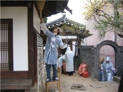 활동 인원이 모두 모인 가운데, 각자의 옛집 단장의 역할을 맡아 부산한 옛집 대청소의 행사가 시작되었습니다.